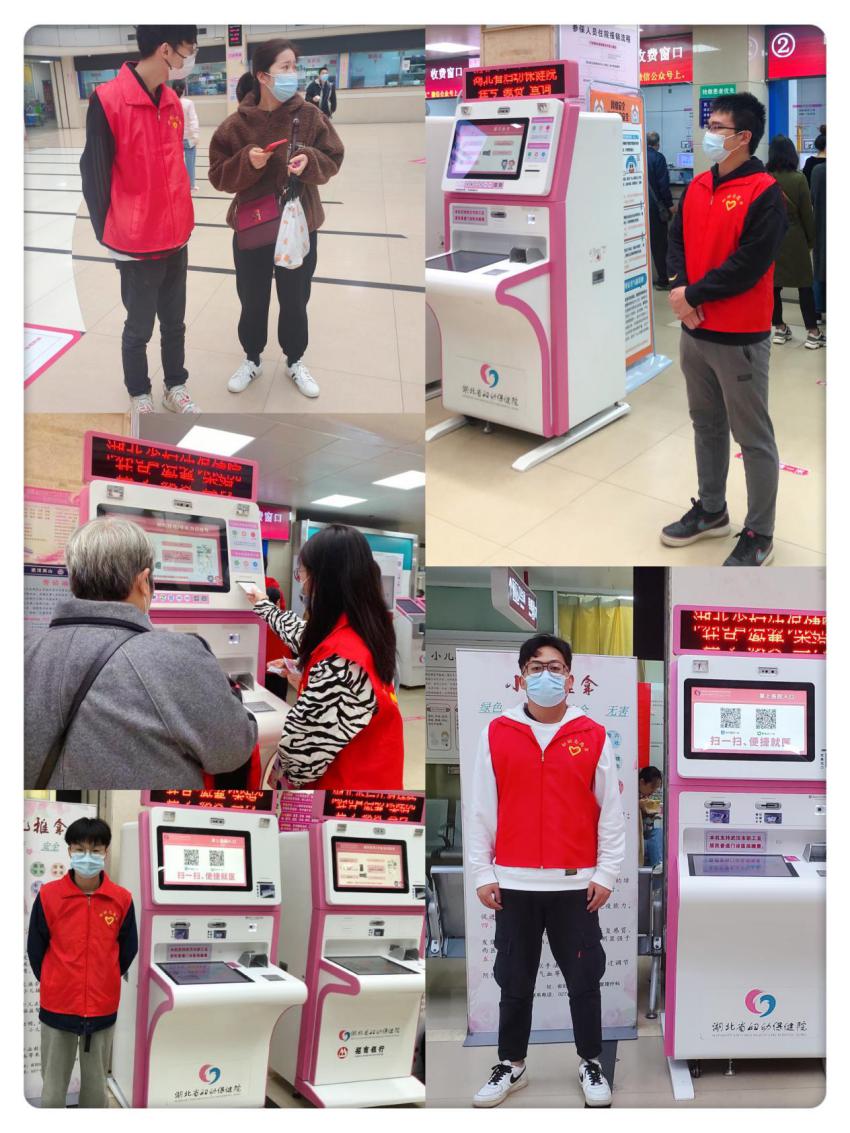 在青春导诊志愿服务活动中,支部志愿者主动学习和咨询,积极总结工作要领及注意事项,在导医台处协助护士进行导诊服务,指导患者在线上提交核酸检测申请,协助患者及家属操作自助挂号机,进行挂号、缴费、查询等。部分老年患者不识字、不会操作机器,部分患者及家属初来医院、倍感迷茫,支部志愿者均细心问候、耐心协助,让患者感到温暖和安慰的同时,全力助力湖北省妇幼保健院疫情防控常态化管理期间的就诊工作。