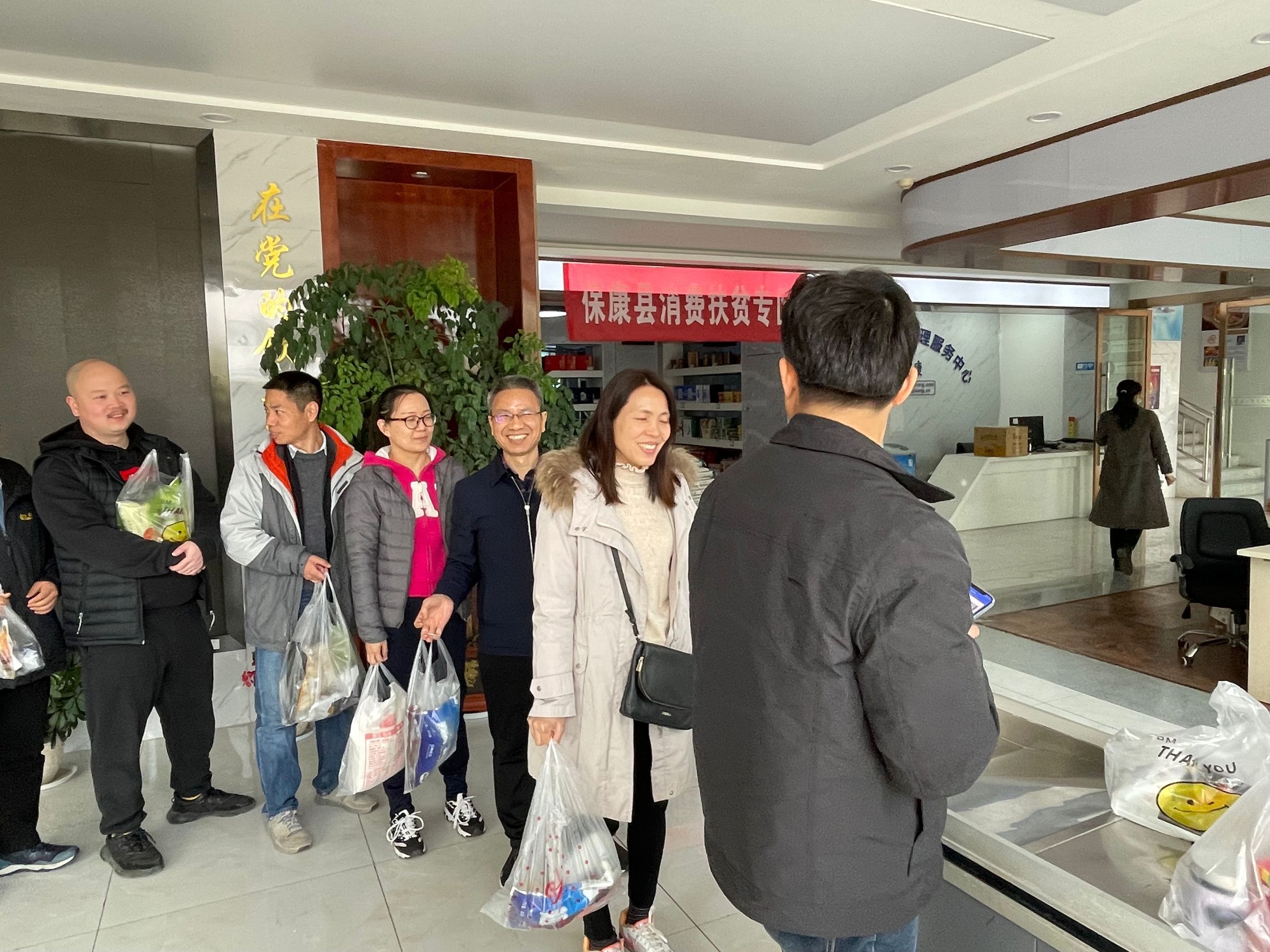 学校驻保康县工作队队员带领老师们参观保康县消费扶贫专馆,了解当地农特产品运营方式。馆内展示了保康生态米、汾清河葛根粉、佰蒂蓝莓干等农副产品,琳琅满目,吸引了老师们纷纷驻足购买。