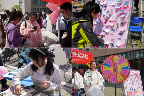 本次活动主要包括答题互动、暖心寄语、干花书签和抽奖必中四个部分。在答题互动环节,参与者通过扫描二维码完成电子问卷,在答题过程中了解生理常识、消除性别偏见;在暖心寄语环节,参与者在便利贴上写下祝福语并粘贴在展板上,为理解、尊重、关爱女性发出自己的声音;在书签制作环节,参与者合作制作叶脉书签,体会和谐关系中的幸福和美好。完成上述某项活动后参与者还可以通过转盘抽奖,抽取书籍、帆布袋、钥匙扣和鲜花等奖品。本次活动广受欢迎和好评,活动现场气氛融洽、欢快。