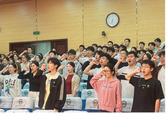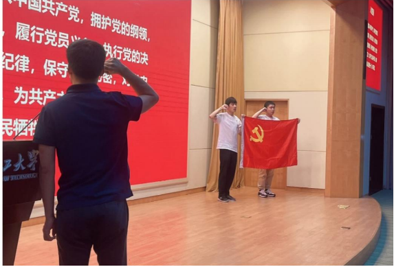 会议在雄壮的国歌声中拉开帷幕,材料学院党委副书记沈国芳带领全体学员重温入党誓词,表达对党的忠诚、为共产主义奋斗终身的决心。