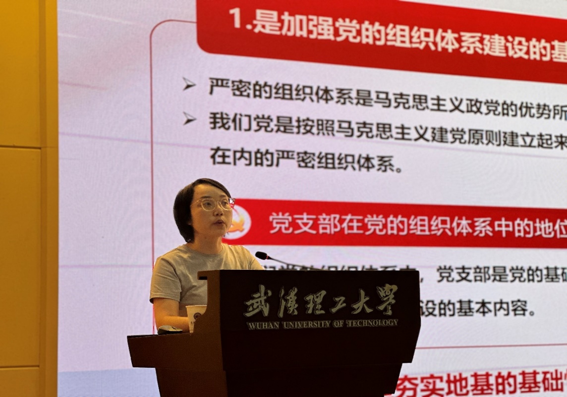 培训第一讲,校党委组织部副部长商丹以“牢记职责任务、做合格的党支部书记”为主题,重点讲述了从历代领导人关于基层党组织的重要论述引入进行授课,并强调各党支部委员要充分认识加强党支部建设的重要意义,始终牢记自身职责任务,做一名合格的新时代党员。