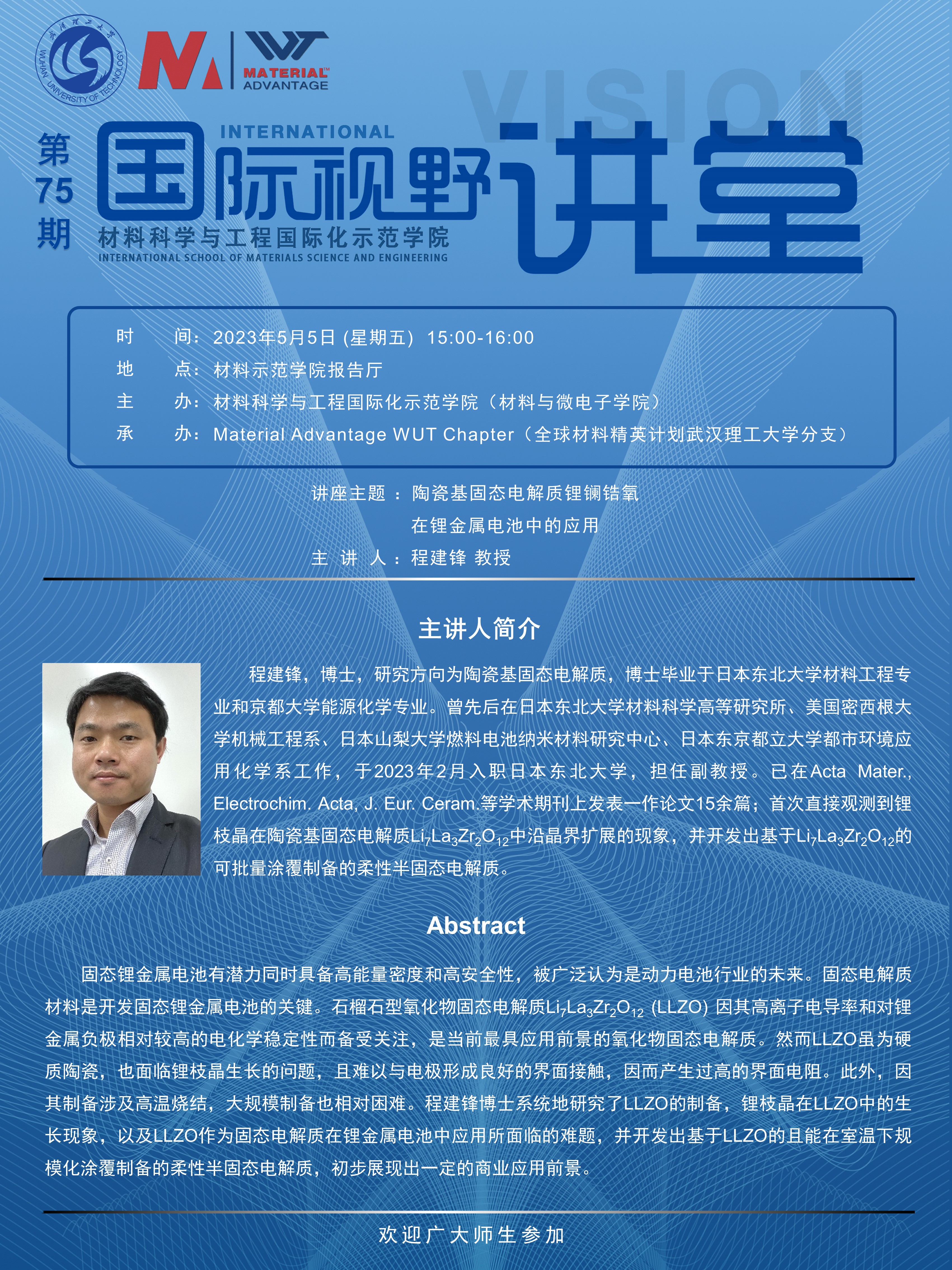 【国际视野讲堂】第75期:日本东北大学程建锋副教授学术报告会