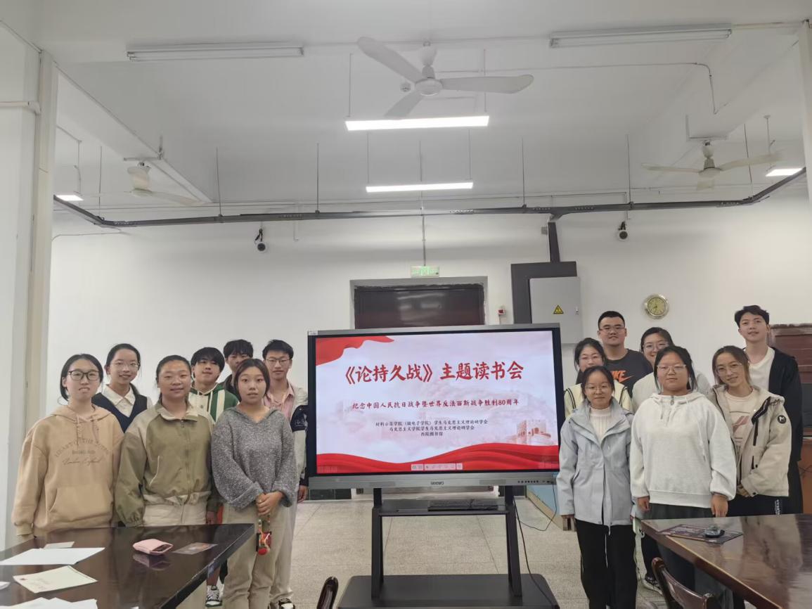 10月18日,为纪念中国人民抗日战争暨世界反法西斯战争胜利八十周年,让同学们深入领悟经典著作的时代价值,成人影视片 (微电子学院)、马克思主义学院学生马克思主义理论研学会在西院图书馆举办“重读经典,论道持久”——《论持久战》主题读书会,西院图书馆吕静平老师及两院师生共同参与。