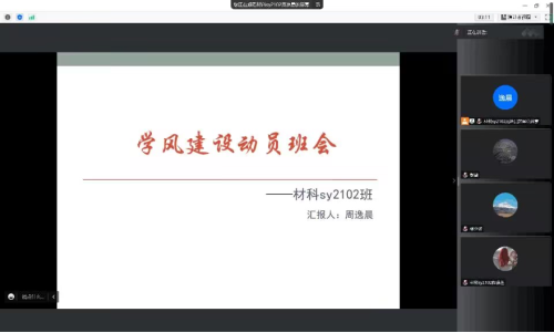 为加强班级学风建设,营造勤学乐学的学习氛围,材科sy2102班于11月13日晚19时举行了线上学风建设动员班会。会议由学习委员周逸晨主持,材科sy2102班全体同学参会。