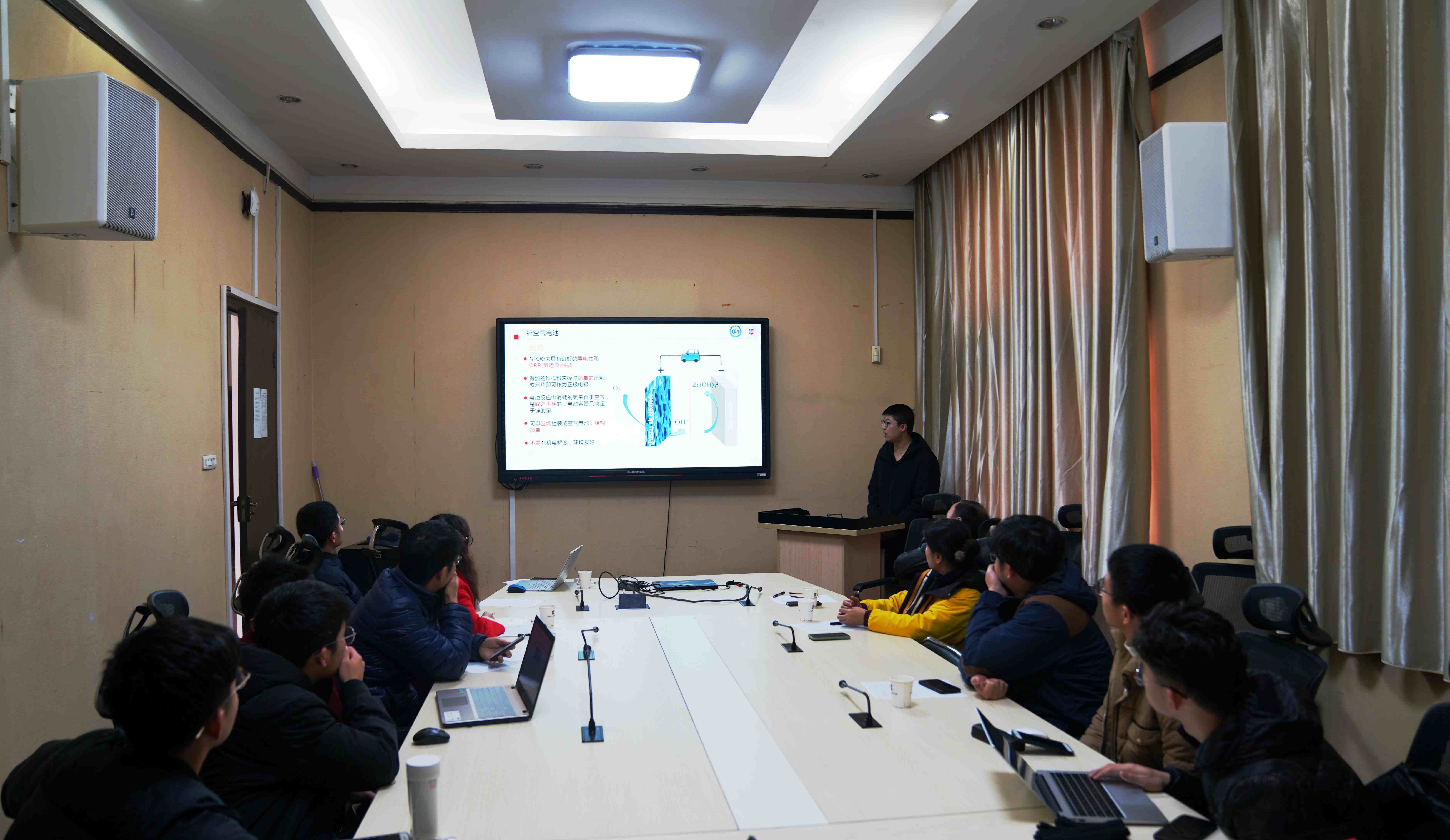 经过2周的准备,学院一共有7支队准备参赛,11月28日、12月2日各参赛队伍指导老师、成员以ppt展示的形式对拟申报的项目进行展示,从选题背景、技术路线、实施方案、应用前景等方面详细介绍项目思路,参赛项目有涉及钙钛矿太阳能电池环保技术改进、汽车尾气净化改进装置、废弃生物质原材料的新型压力发电自热式保暖鞋等。在钱作勤教授的指导下,各队伍针对项目的技术原理、作品展示形式等进一步完善改进,其中材科sy1602班尤汉同学的团队在钱作勤教授和指导老师鄢永高研究员的指导下,经过3次调整,将项目从“利用光技术制备微型热电制冷芯片”调整为“基于物联网技术的微型自取能温度传感器及其在空调节能方面的应用”,更加契合“节能减排”主题。