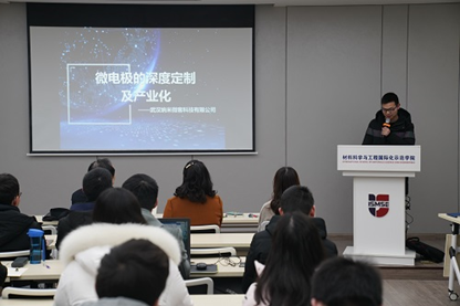 随后,学院参与此次“创青春”竞赛的其中一支学生团队进行了项目展示,并就其参赛项目《微电级的深度定制及产业化》进行了创新思路阐述及产品介绍。